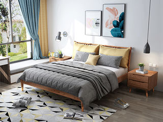 简森曼 北欧风 床头床尾脚为橡胶木 原木色 1.8米床 【实木拼接工艺】