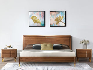乐芙兰 北欧 进口白蜡木+多层实木板+松木床板 胡桃色 1.8米床