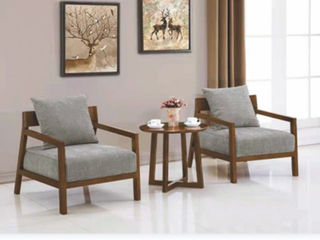 乐芙兰 北欧 进口白蜡木+多层实木板+超纤皮+高回弹海绵 图片色 休闲椅2+园几1