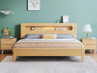 简森曼 北欧风 床头床尾脚为橡胶木靠背为皮艺填充海绵 原木色 1.8米床 【实木拼接工艺】