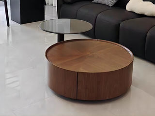 贝斯solo 设计师 网红 极简 多层板+实木抽屉+多 功能储物柜+贴木皮 1米茶几