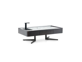 逸澜斯 极简 深色金属漆+太空灰+冰清玉洁微晶石+环保高密度板+实木+钛金脚 1.3米茶几