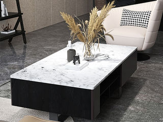 缔造 极简 宝格丽天然石面+ 高密度板做烤漆+碳素钢喷哑黑色脚 1.4米茶几