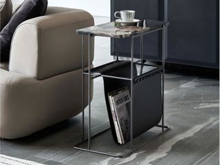 缔造 极简 黑玫瑰天然石材+ 碳素钢框架喷涂灰钛色+马铵硬皮 0.625米边几