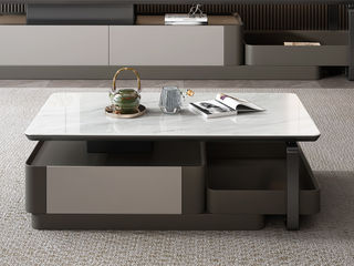 逸澜斯 极简 彩云石+环保高密度板+实木 1.3米茶几