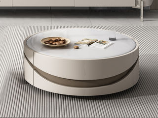 缔造 极简 大象白天然石面+ 碳素钢喷哑黑色脚 1米茶几