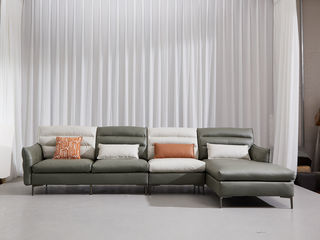 B系优选 极简 高档柔性科技布+全实木落叶松框架+高强度镀金拉簧 浅咖色 四人位+左贵妃 3.45米 沙发