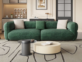 B系优选 极简 高密灯芯绒面料+全实木落叶松框架+高强度镀金拉簧 绿色 双扶四人位2.8米沙发+脚踏