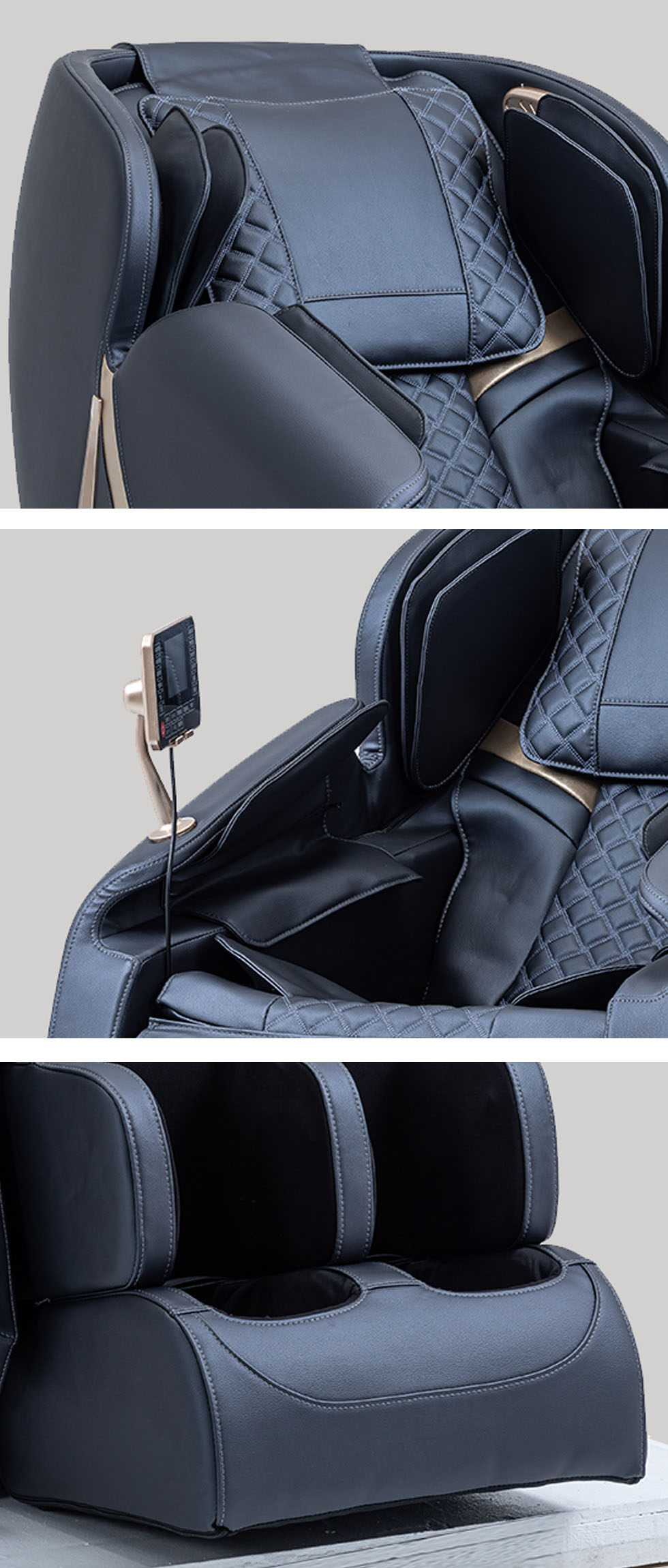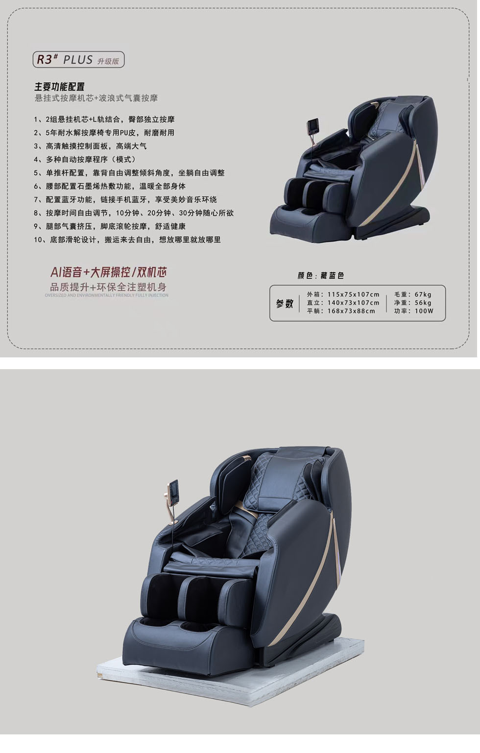 摩锐 现代简约 环保注塑机身+钢架结构+PU皮+3D机芯+触摸控制面板+蓝牙+音响 蓝灰色 按摩椅
