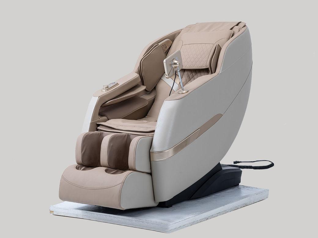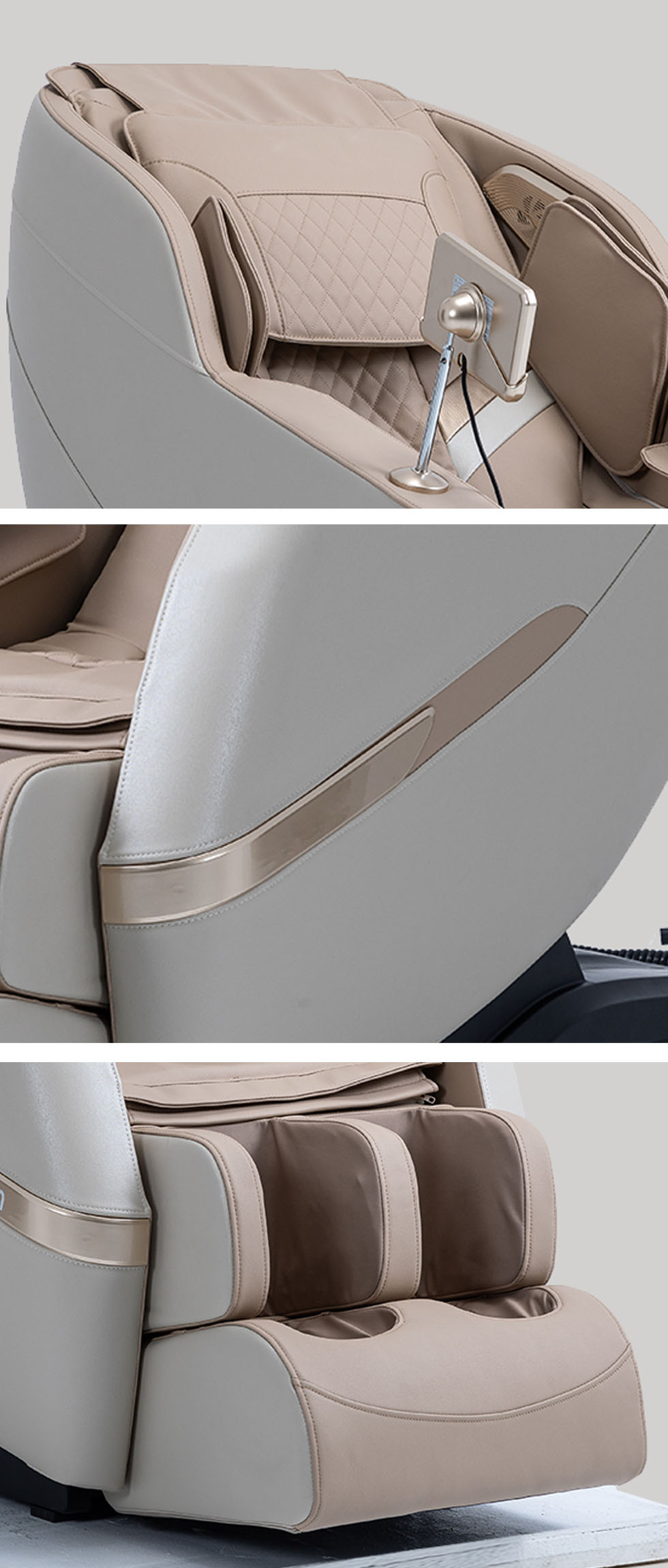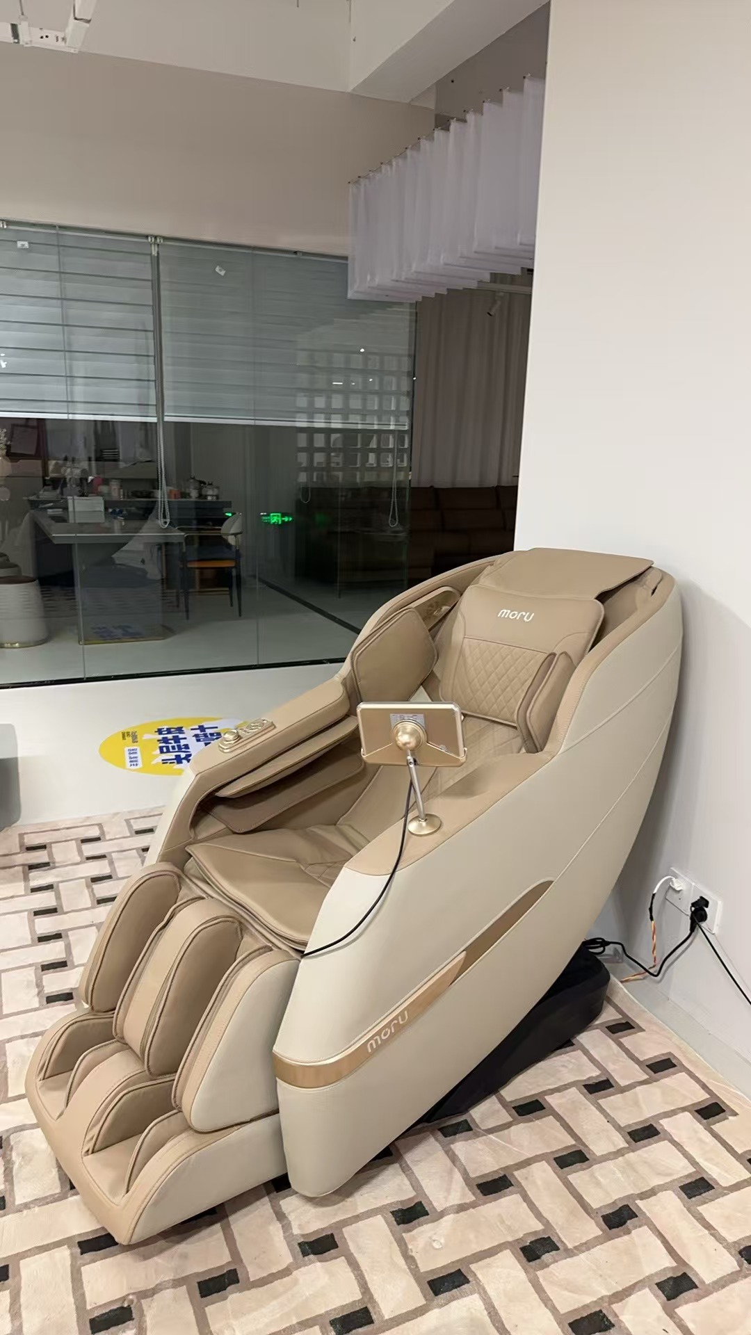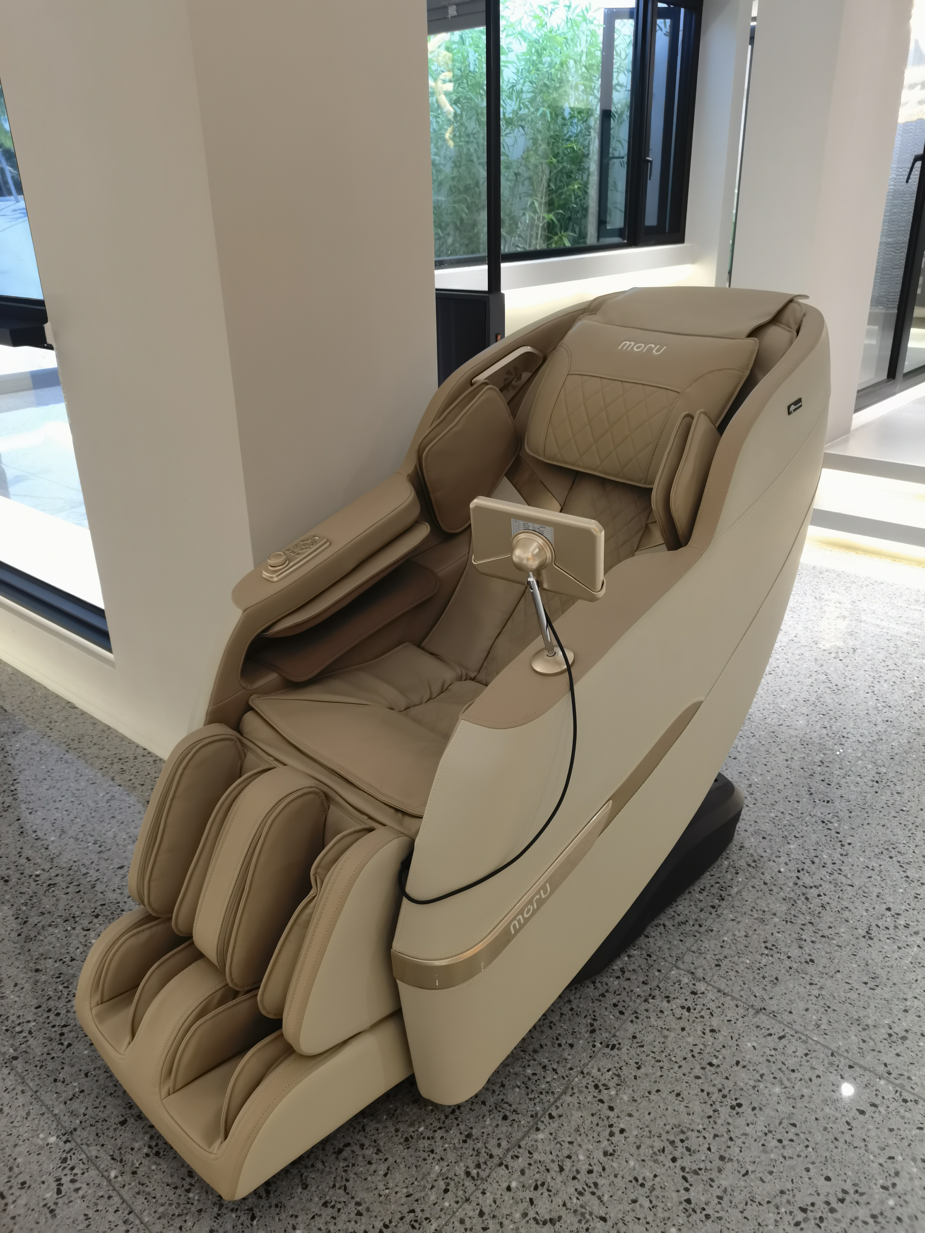 摩锐 现代简约 环保注塑机身+钢架结构+PU皮+3组悬挂机芯+触摸控制面板+蓝牙+音响 杏色 按摩椅