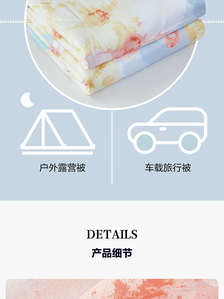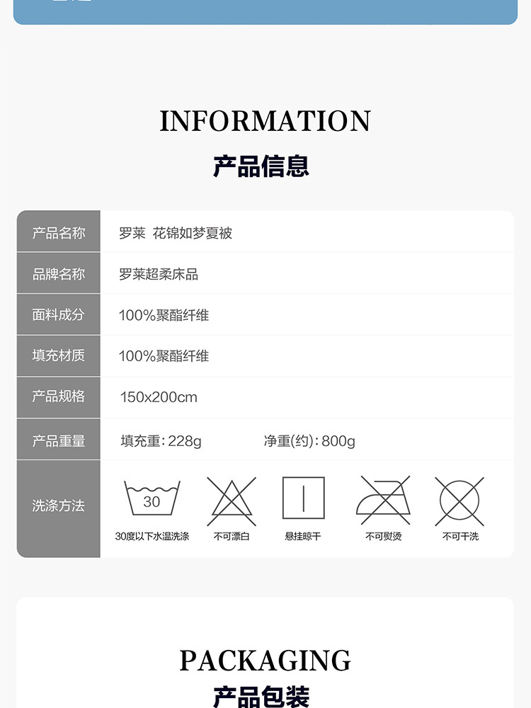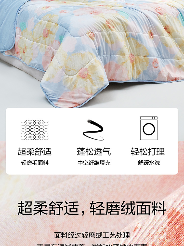 | 规格:150*200cm | 面料:面料材质:100%聚酯纤维 | 填充物:填充材质:100%聚酯纤维 |