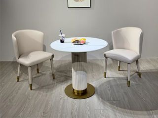 上铭轩 轻奢 超晶石+不锈钢电镀五金 洽谈台洽谈桌