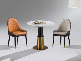 上铭轩 轻奢 不锈钢电镀五金+岩板+仿真皮 洽谈台洽谈桌