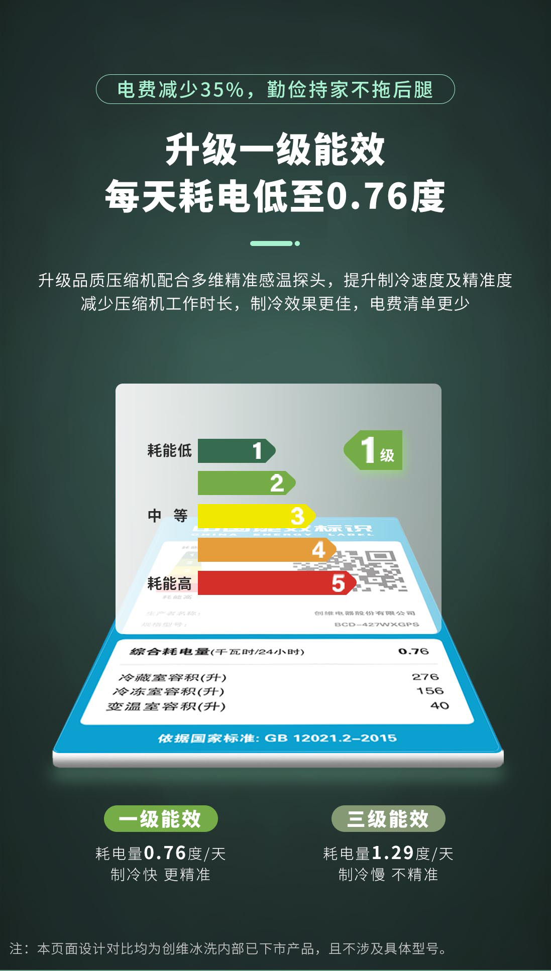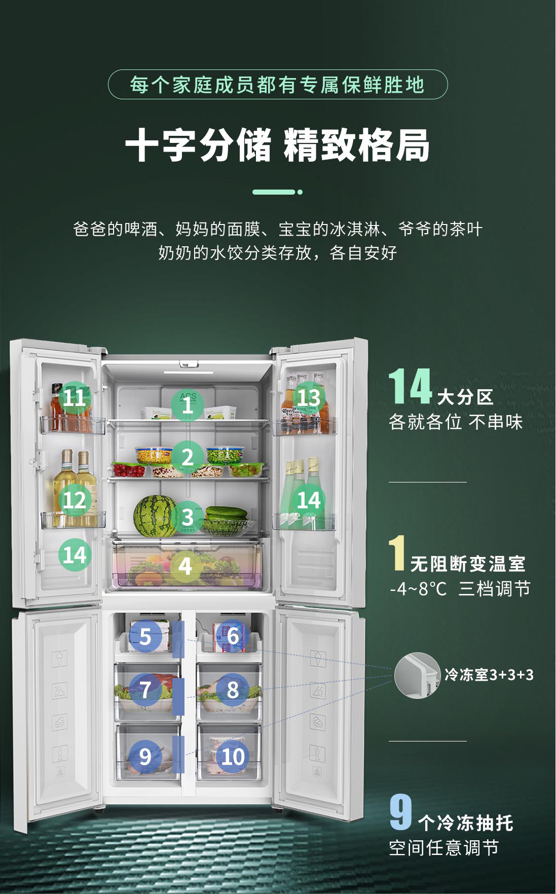 创维 一级能效 426L 玄武岩 风冷十字四门 冰箱