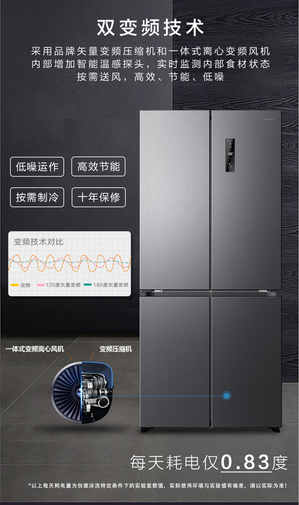 康佳 485升变频一级能效四开门电冰箱星影灰¥6195