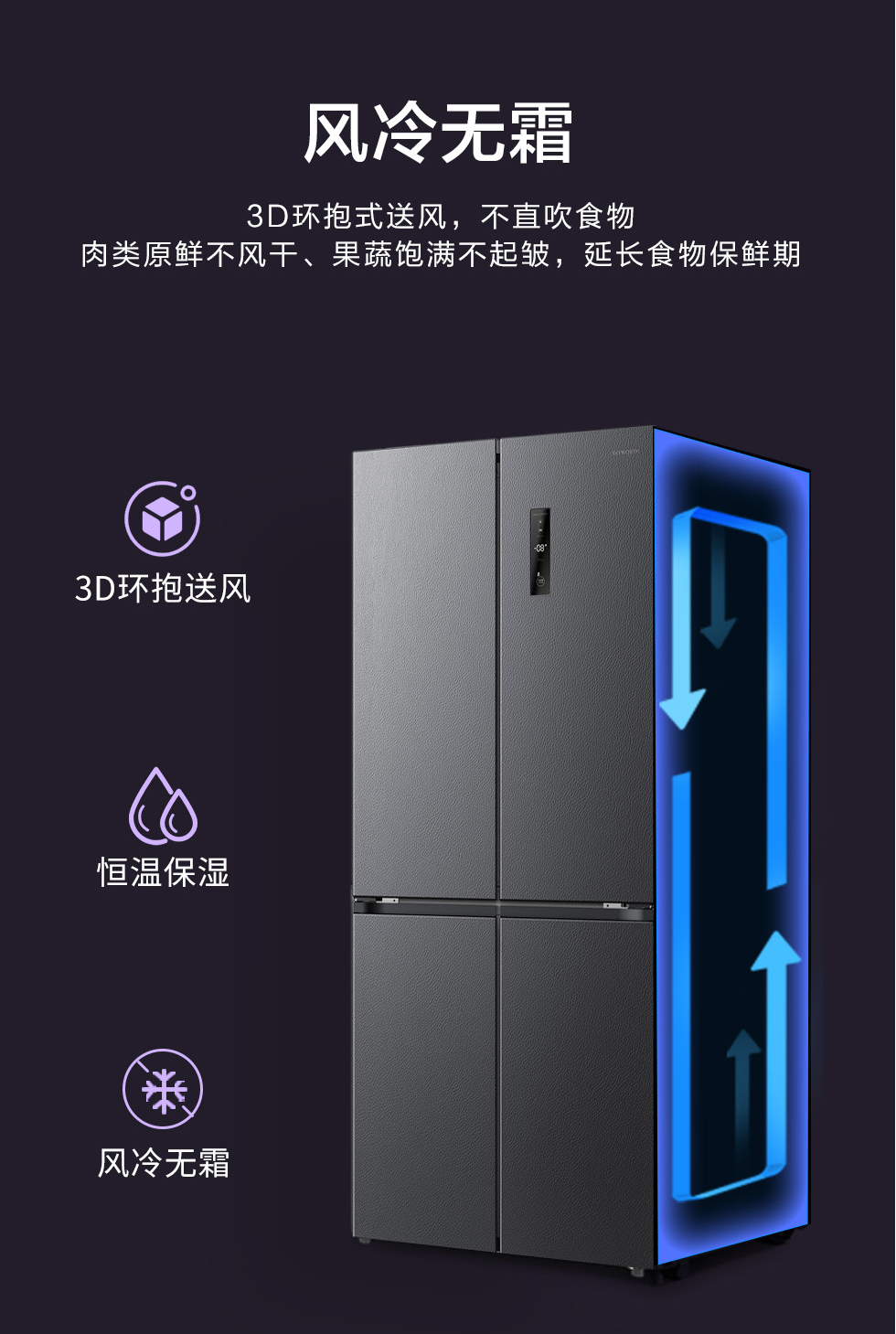 创维 一级能效 426L 玄武岩 风冷十字四门 冰箱