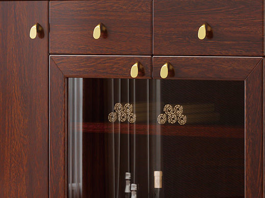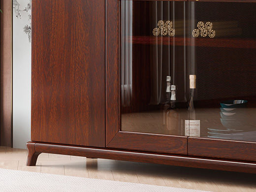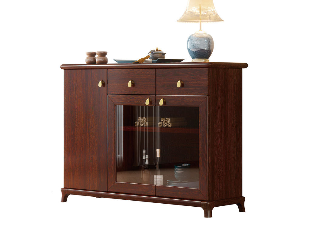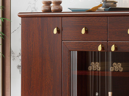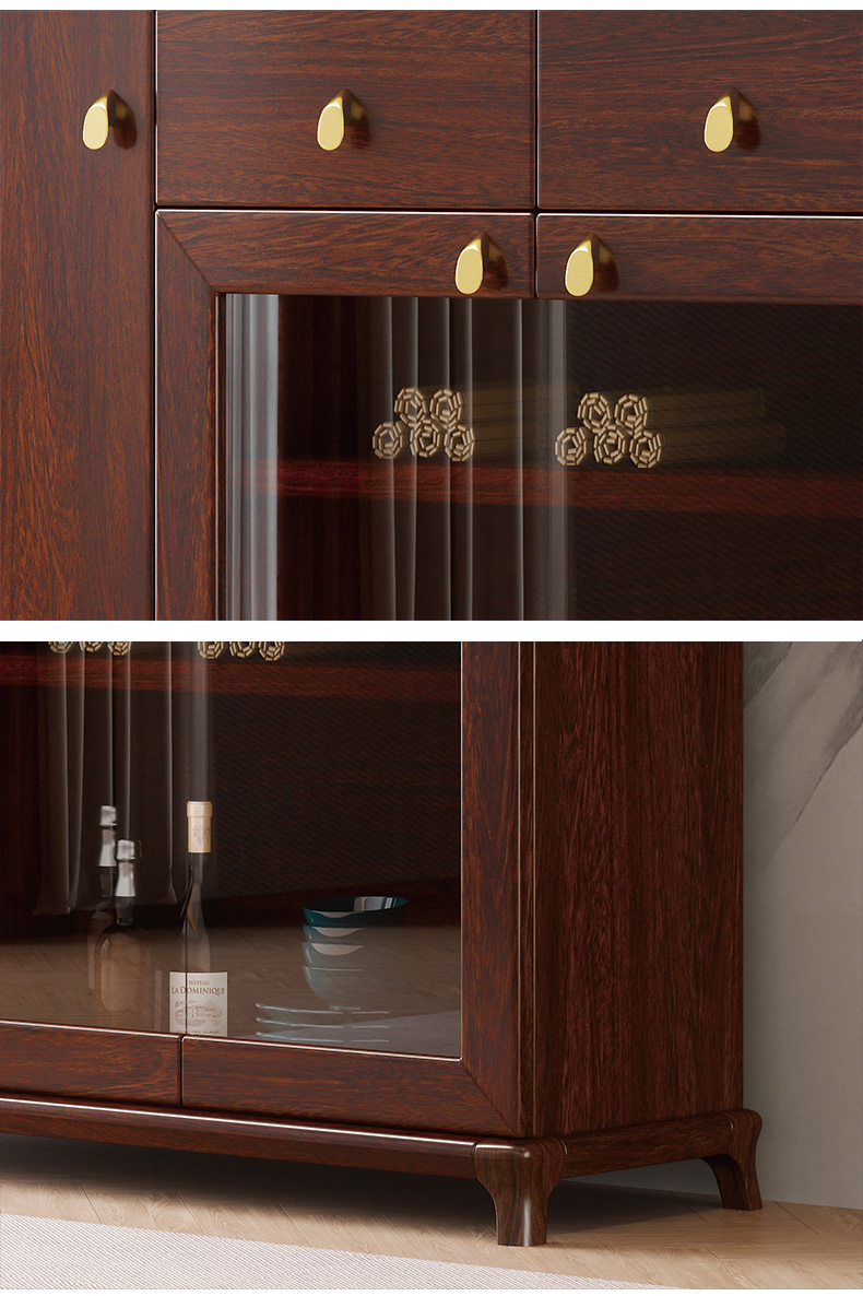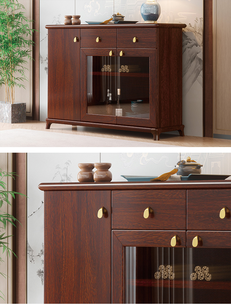 宝瑞·檀风 新中式 印尼金花梨木框架+多层实木板贴皮+玻璃+静音导轨+电镀五金 紫檀色 餐边柜