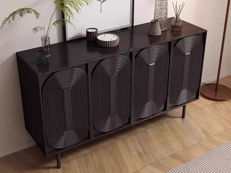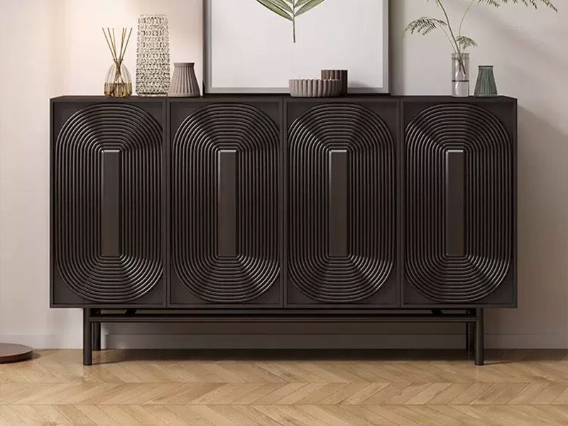 洛萨 极简 实木柜体+钢琴烤漆+水曲柳木纹+碳素钢 餐边柜