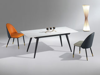 洛萨 现代 碳素钢架子+雪山石岩板 1.6米 拉伸 功能 长餐桌