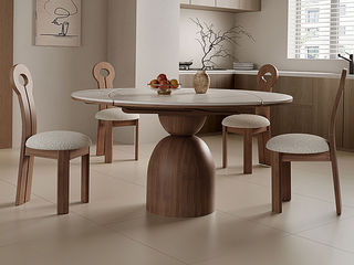 洛萨 现代 白蜡木+香奈儿岩板面 1.3米 拉伸 功能 圆餐桌