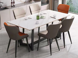 B系优选 现代简约 碳素钢五金脚+12mm岩板面 1.4米餐桌+4把餐椅(含底板)