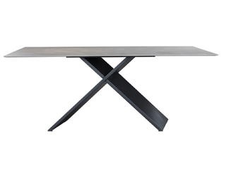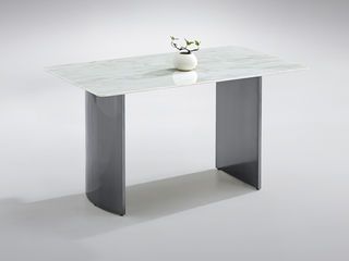 小红书系列 极简 桌面:塞尔拉灰彩晶石+底板脚架:不锈钢灰钛+木纹 1.4米餐桌