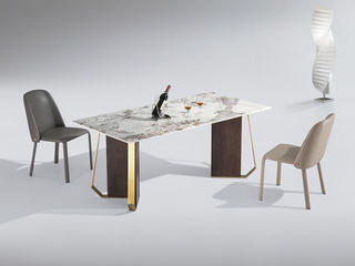小红书系列 轻奢 桌面:天然石+绒布底板脚架:不锈钢镜面+亚克力镀金 1.6米餐桌