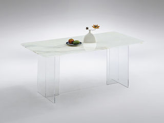 小红书系列 现代简约 卡里冰玉天然石+亚克力脚+单板 1.4米长餐桌