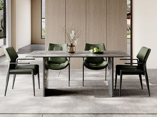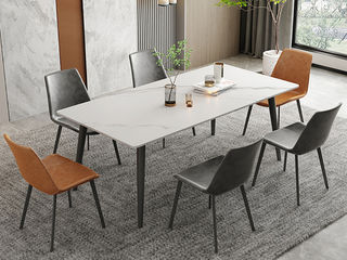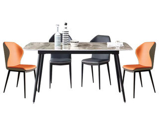 A系优选 现代简约 餐桌:碳素钢+岩板 1.4米 餐椅:骨架:五金材质 1.4米餐桌+4把餐椅 (含底板)