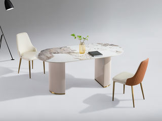 小红书系列 轻奢 桌面:天然石脚架:铝合金镀金 1.6米餐桌