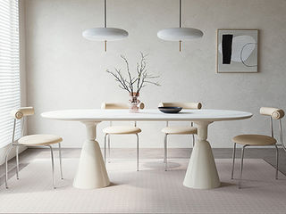 云端 奶油风 玻璃钢烤漆底座+亮光岩板面 多层板底板 卡其色 1.4米餐桌