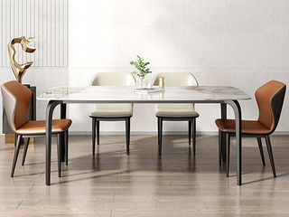 A系优选 现代简约 餐桌:碳素钢架+哑光岩板+底板+餐椅:马碳素钢+西皮+高密度海绵 1.4米餐桌+4椅 (不含底板)