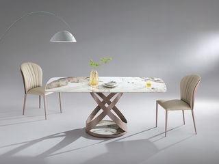 拉斐尔 轻奢 电镀不锈钢五金+天然大理石 1.4米餐桌