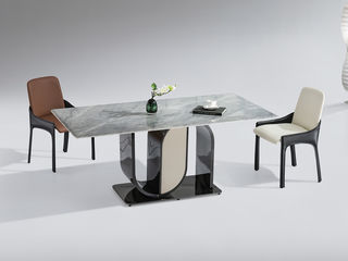 小红书系列 轻奢 桌面:天然石+绒布底板脚架:不锈钢黑钛 1.6米餐桌