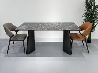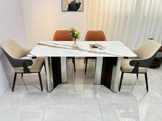洛萨 现代 超晶石+ 不锈钢架子+木纹贴皮 1.4米餐桌