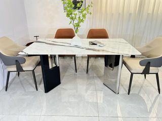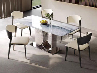 洛萨 现代 不锈钢脚架+超晶石+底板 1.4米餐桌
