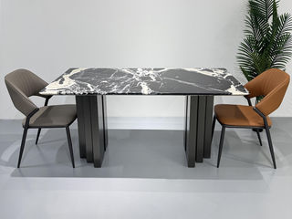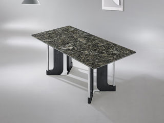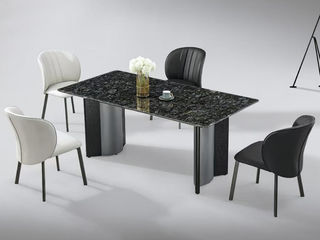 洛萨 现代 不锈钢脚架+加厚边+宝格丽黑奢石 1.4米餐桌