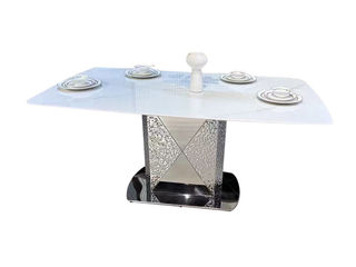 洛萨 现代 不锈钢脚架+加厚边+铂金钻奢石 1.4米餐桌