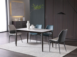 洛萨 现代 碳素钢+雪山白哑光 1.4米 长餐桌