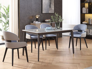 洛萨 现代 超晶石+ 不锈钢架子+木纹贴皮 1.4米餐桌