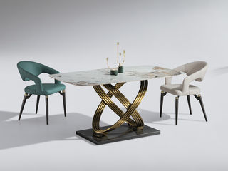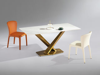 拉斐尔 轻奢 电镀不锈钢五金+天然大理石 1.4米餐桌