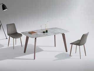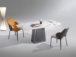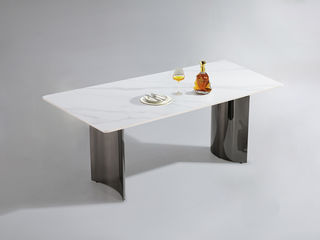 柏思戈 轻奢 碳素钢莫兰紫底座+实木承托底板+亮光岩板 潘多拉 1.4米餐桌