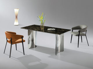 小红书系列 轻奢 桌面:天然石+常规底板脚架:不锈钢镜面 1.4米餐桌