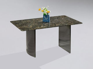 甄品家具 轻奢 桌面:天然石+常规底板脚架:不锈钢灰钛 1.4米餐桌