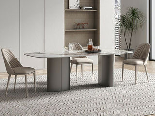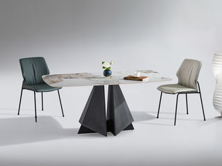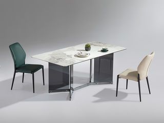 帝幔佧 极简 香奈儿岩板台面/蛇形碳素钢底架 1.4米 长餐桌
