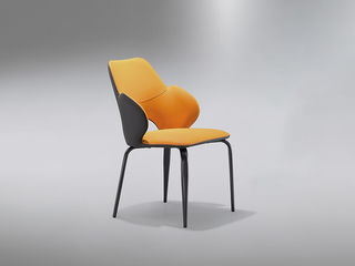 甄品家具 现代简约 碳素钢深灰+西皮 橙色 餐椅1把
