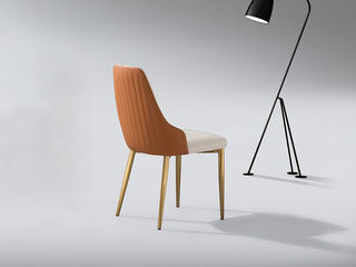 甄品家具 现代简约 不锈钢钛金+西皮 前白后橙 餐椅1把