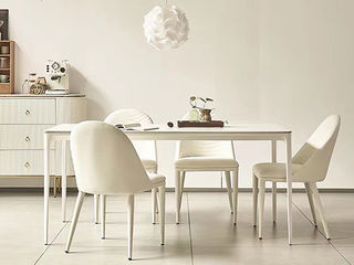 B系优选 奶油风 铝合金材质餐桌+岩板面 1.4米餐桌+4把餐椅(不含底板)