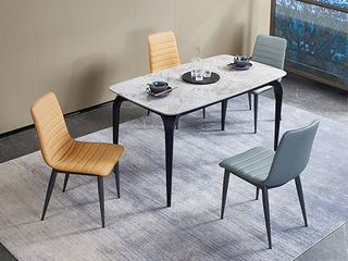 左右家居 现代简约 碳素钢五金脚+E1级密度板+岩板 1.4米餐桌