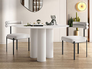 云端 奶油风 浮雕线条+岩板面+板材柜体+实木多层板承托板 白色 1.2米圆形餐桌